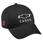 Color/Design: Black with embroidered Chevy Cares logo and pink breast cancer awareness ribbon