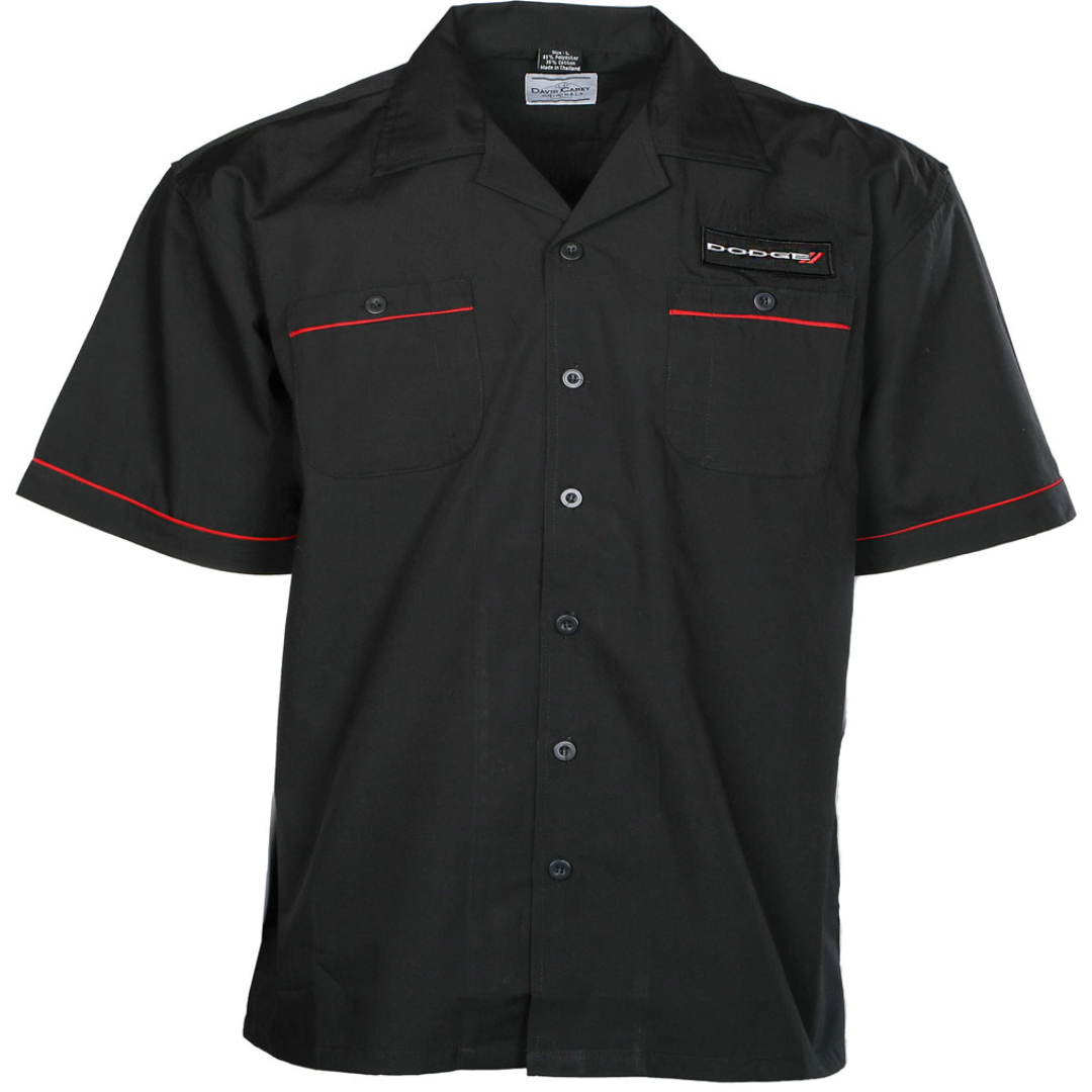 Show off your Dodge pride with this rugged black work shirt, featuring a Dodge logo embroidered on a patch and accented with striking red contrast piping. Designed for durability, this heavy-duty shirt is made from a resilient 65% polyester and 35% cotton blend. Equipped with left and right chest pockets for added functionality, this shirt is officially licensed by Dodge, ensuring authenticity and quality.