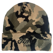 Stay warm and stylish with this 100% acrylic camo beanie, featuring the Ford script embroidered on the front. Officially licensed by Ford Motor Company, this beanie blends rugged camo with authentic Ford branding, making it an ideal accessory for any Ford enthusiast.