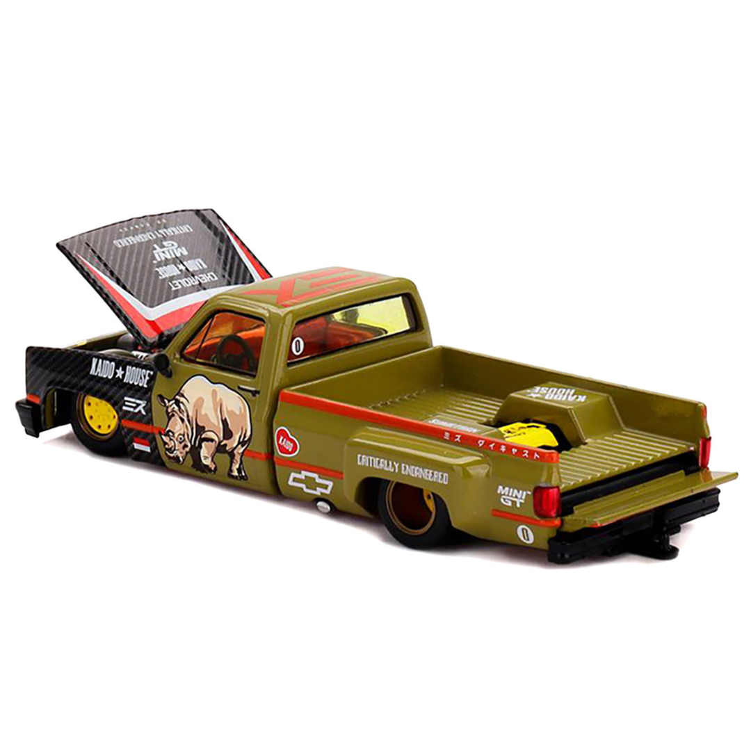 Brand new 1/64 scale diecast car model of Chevrolet Silverado Dually Pickup Truck "Sumatran Rhino" Tan and Carbon with Graphics (Designed by Jun Imai) "Kaido House" Special diecast model car by Mini GT.