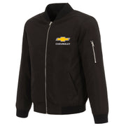 • Color/Design: Black nylon bomber jacket with Chevy branding