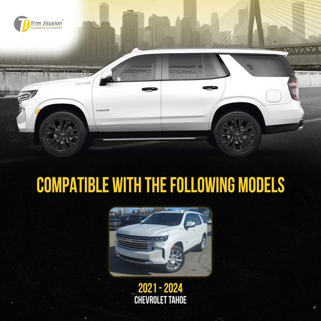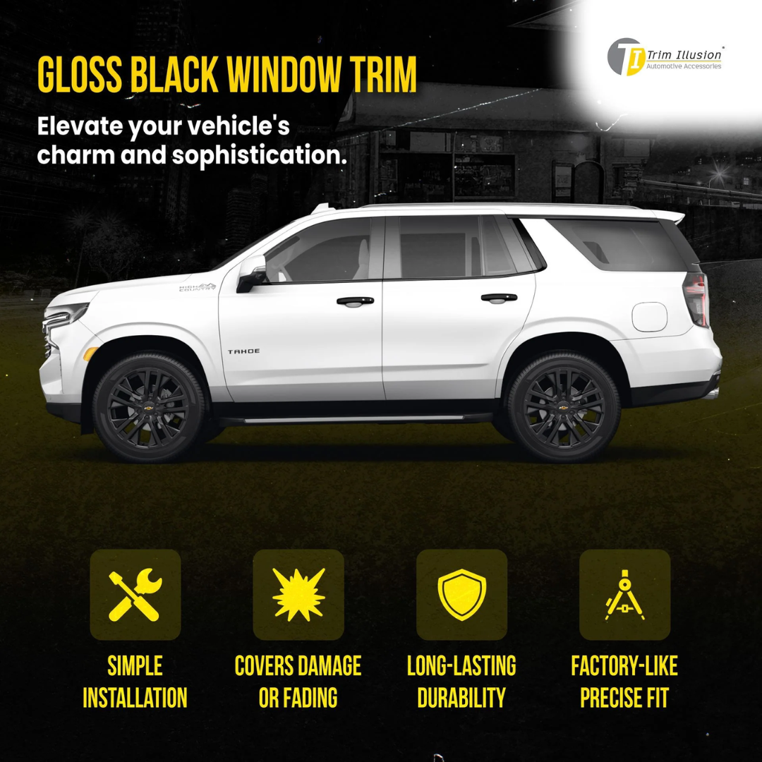 2021-2024 Chevrolet Tahoe 6 PCS Gloss Black Tape-on Window Trim Set