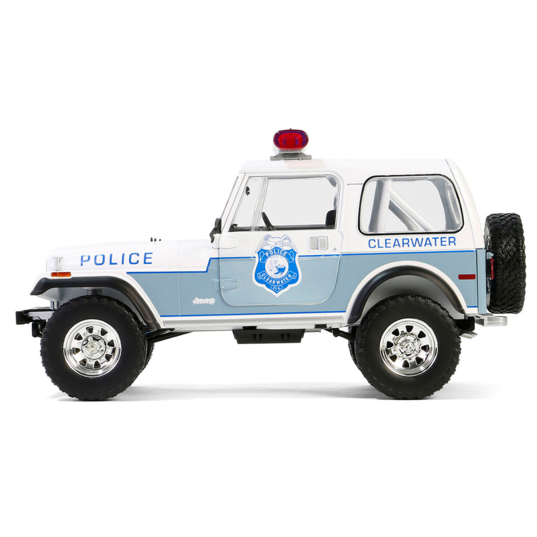 Brand new 1/18 scale diecast car model of 1982 Jeep CJ-7 "Clearwater, Florida Police Department" White and Light Blue "Artisan Collection" Series diecast model car by Greenlight.