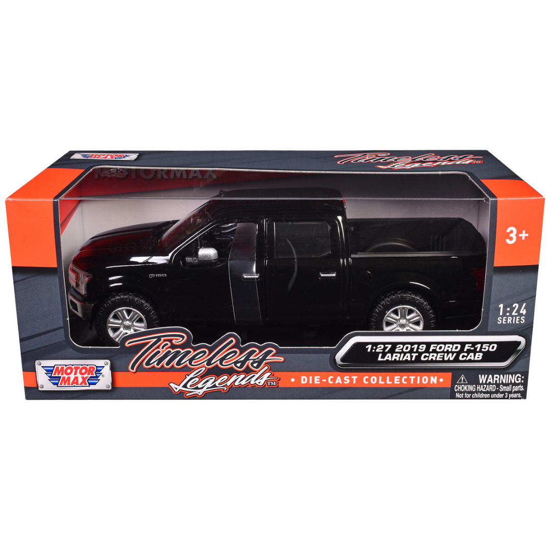 Brand new 1/27 scale diecast car model of 2019 Ford F-150 Lariat Crew Cab Pickup Truck Black diecast model car by Motormax.