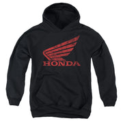 Honda Distressed Powersports Wing – Youth Hooded Sweatshirt | Black