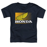 Celebrate classic style with this toddler short sleeve featuring a bold 'Honda/Wing Gradient' design. Made with soft, breathable fabric in navy, this shirt delivers comfort and cool for any fan.