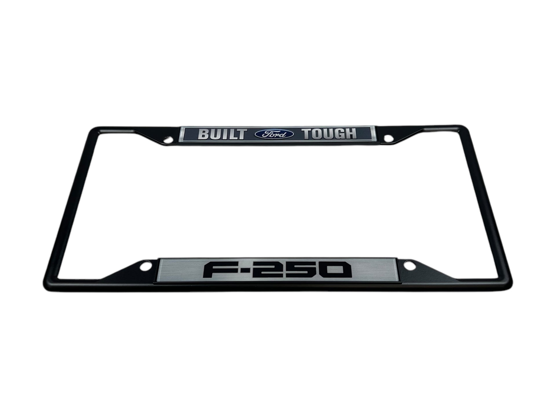 Enhance the look of your vehicle with the Built Ford Tough F-250 Black License Plate Frame. This stylish and durable license plate frame is designed specifically for Ford F-250 enthusiasts who want to showcase their pride in a bold and sophisticated manner. Made from high-quality materials, this frame not only looks great but also offers exceptional durability to withstand various weather conditions and road debris.