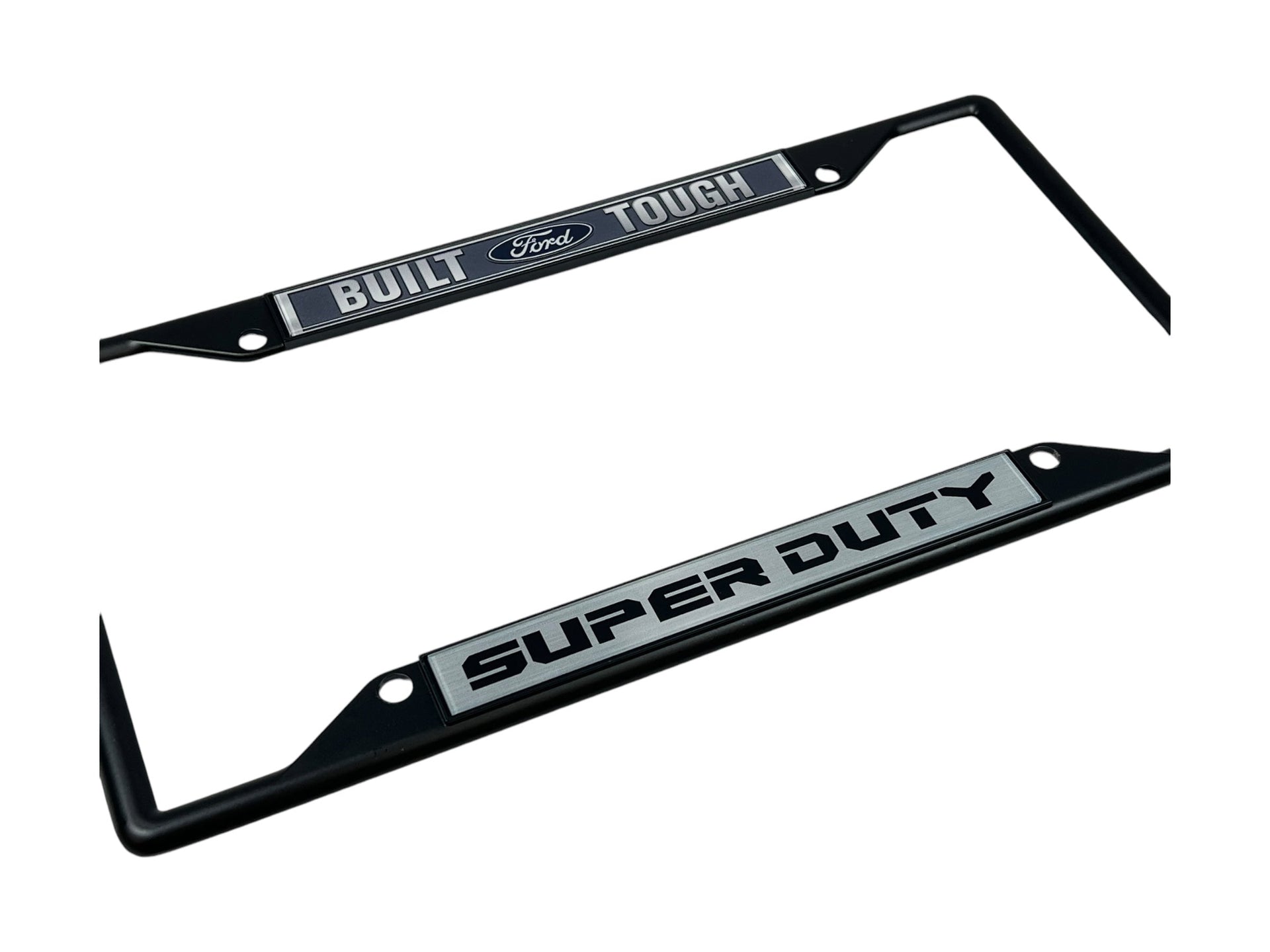 Upgrade your vehicle with the ultimate in style and durability: the Built Ford Tough Super Duty Black License Plate Frame. This license plate frame is not just an accessory; it's a statement that showcases your loyalty to the Ford brand and the rugged lifestyle it represents. Made specifically for Ford Super Duty trucks, this frame blends seamlessly with the vehicle's design while adding a unique flair that all Ford enthusiasts will appreciate.