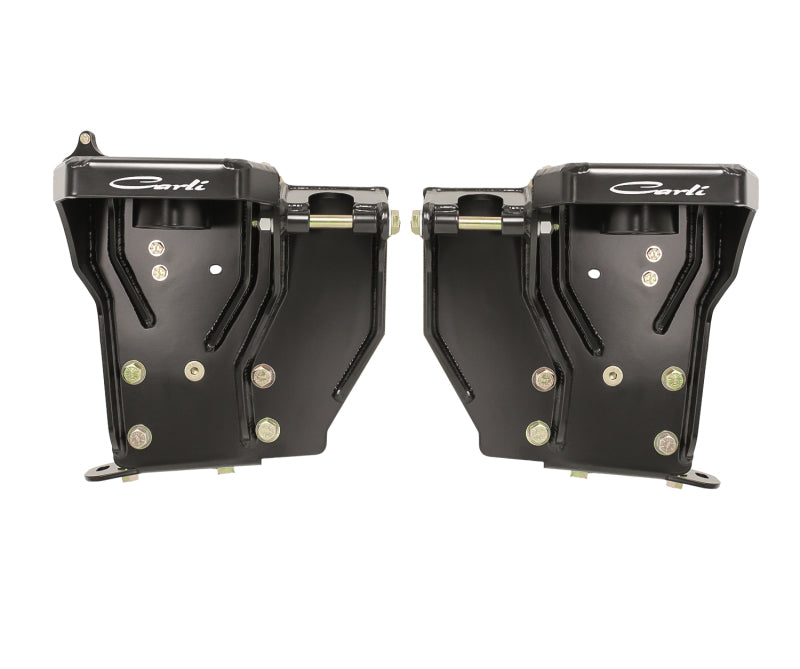 Carli Ford Fabricated Coil Buckets are a massive strength improvement over factory and allow the use of a larger, eyelet style shock found in the Dominator and Unchained systems.