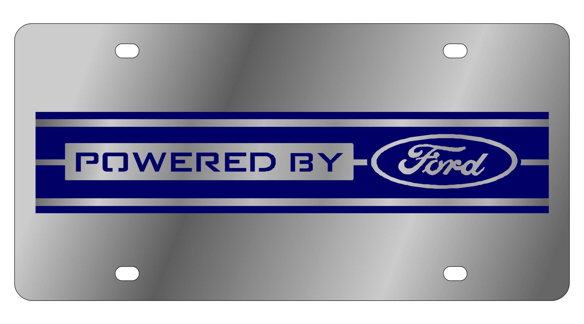 Additionally, the Powered By Ford Stainless Steel License Plate's universal fit means it can be used on most standard vehicles. Whether you're driving in the city or hitting the open road, let everyone know you're Powered By Ford. It's an excellent way to personalize your ride and make a statement wherever you go.