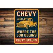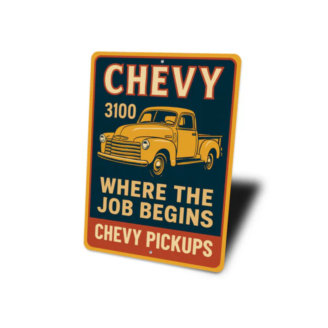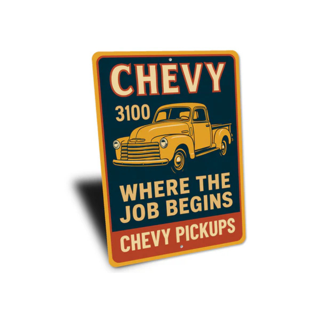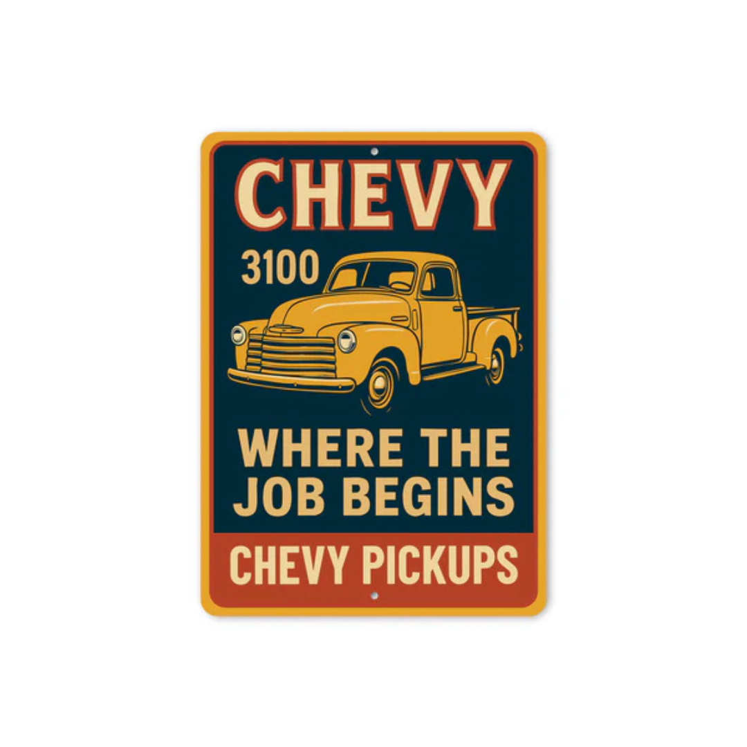 This Chevy Pickups 3100 Where The Job Begins Chevrolet Signs makes a great gift!