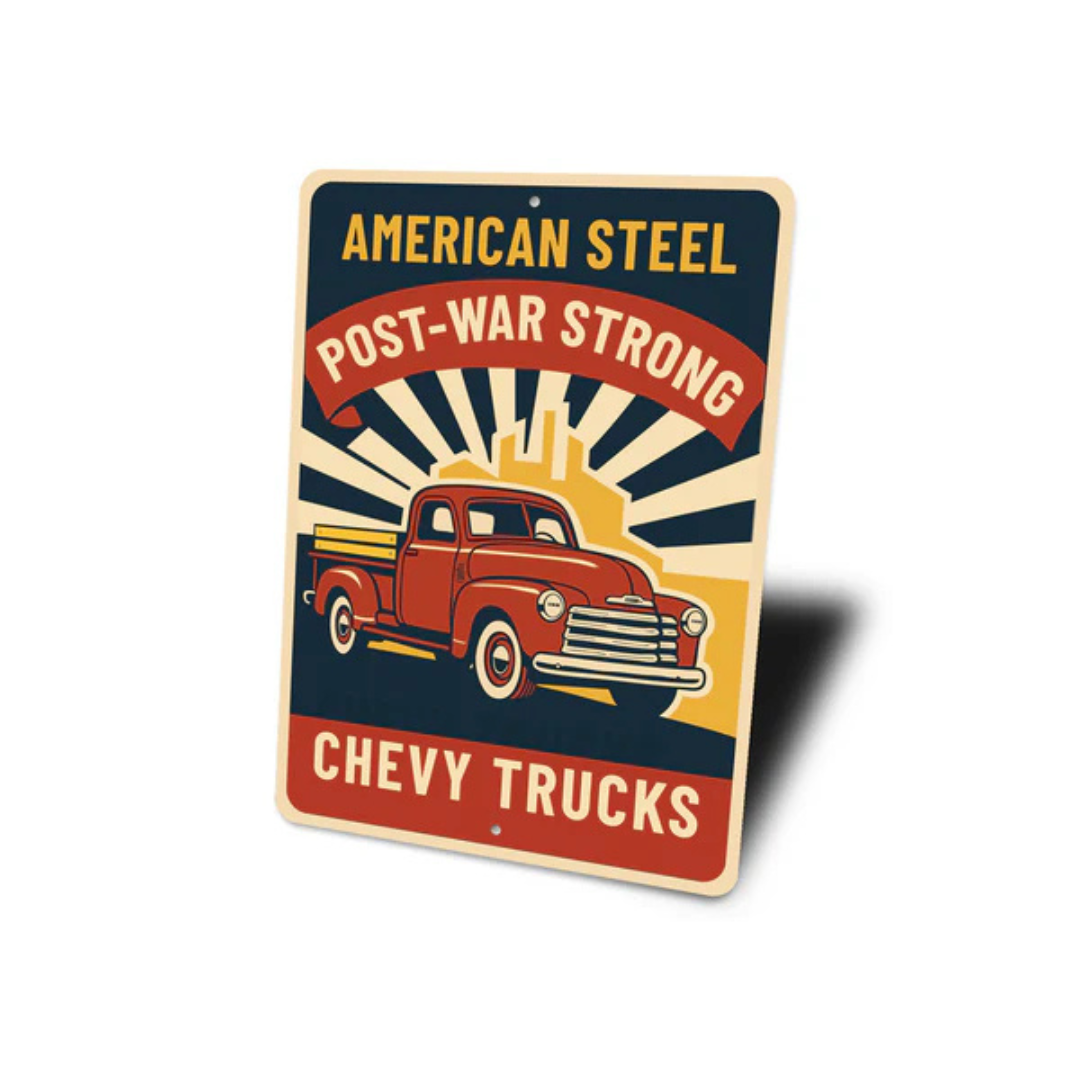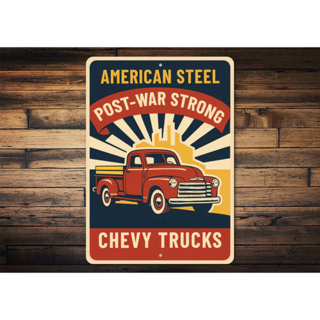 This Chevy Trucks American Steel Post-War Strong Chevrolet Sign makes a great gift!