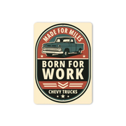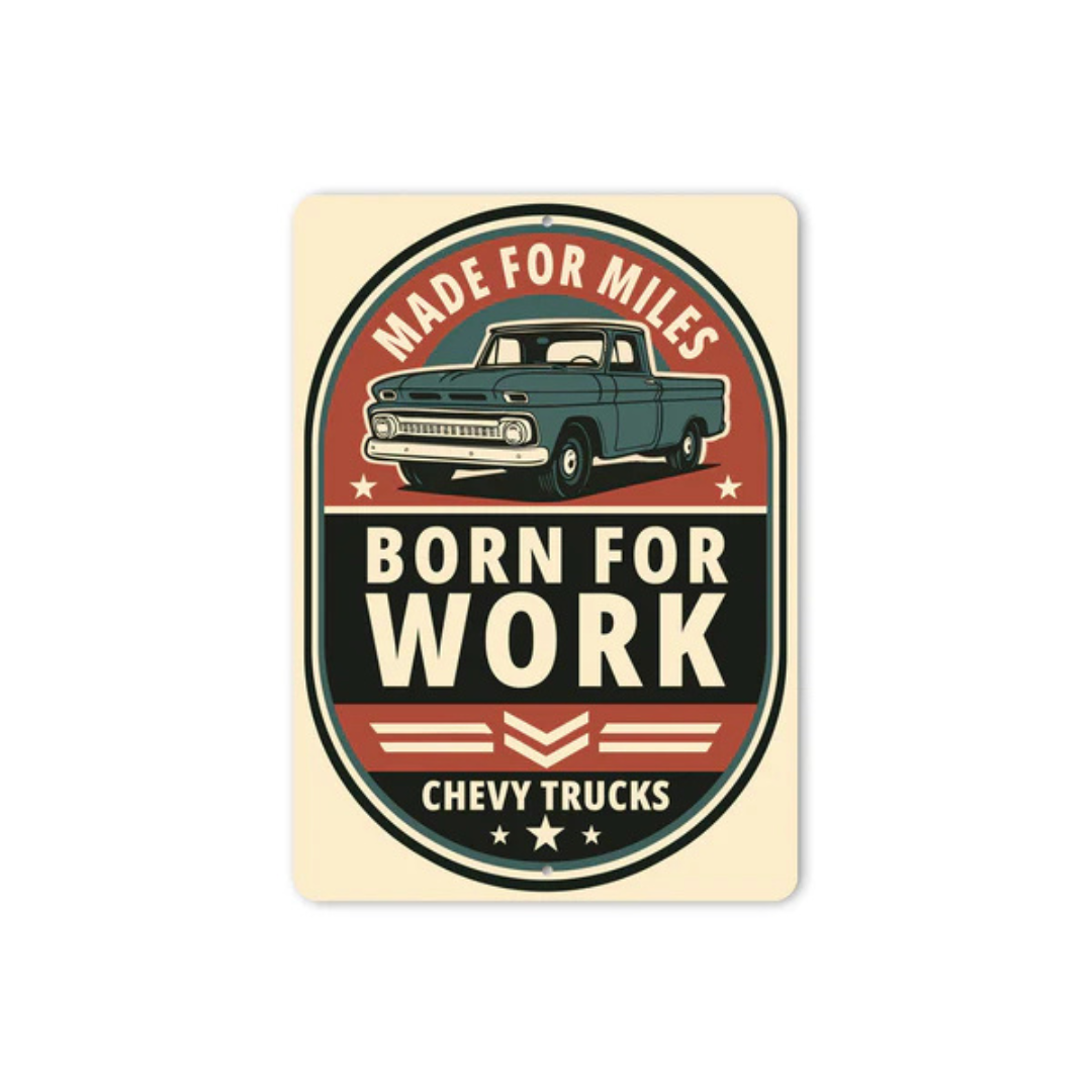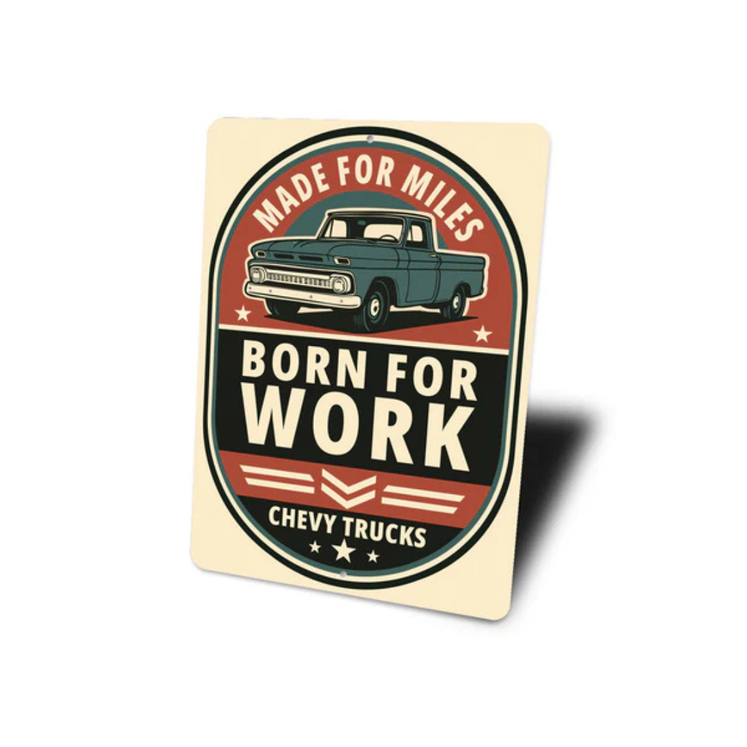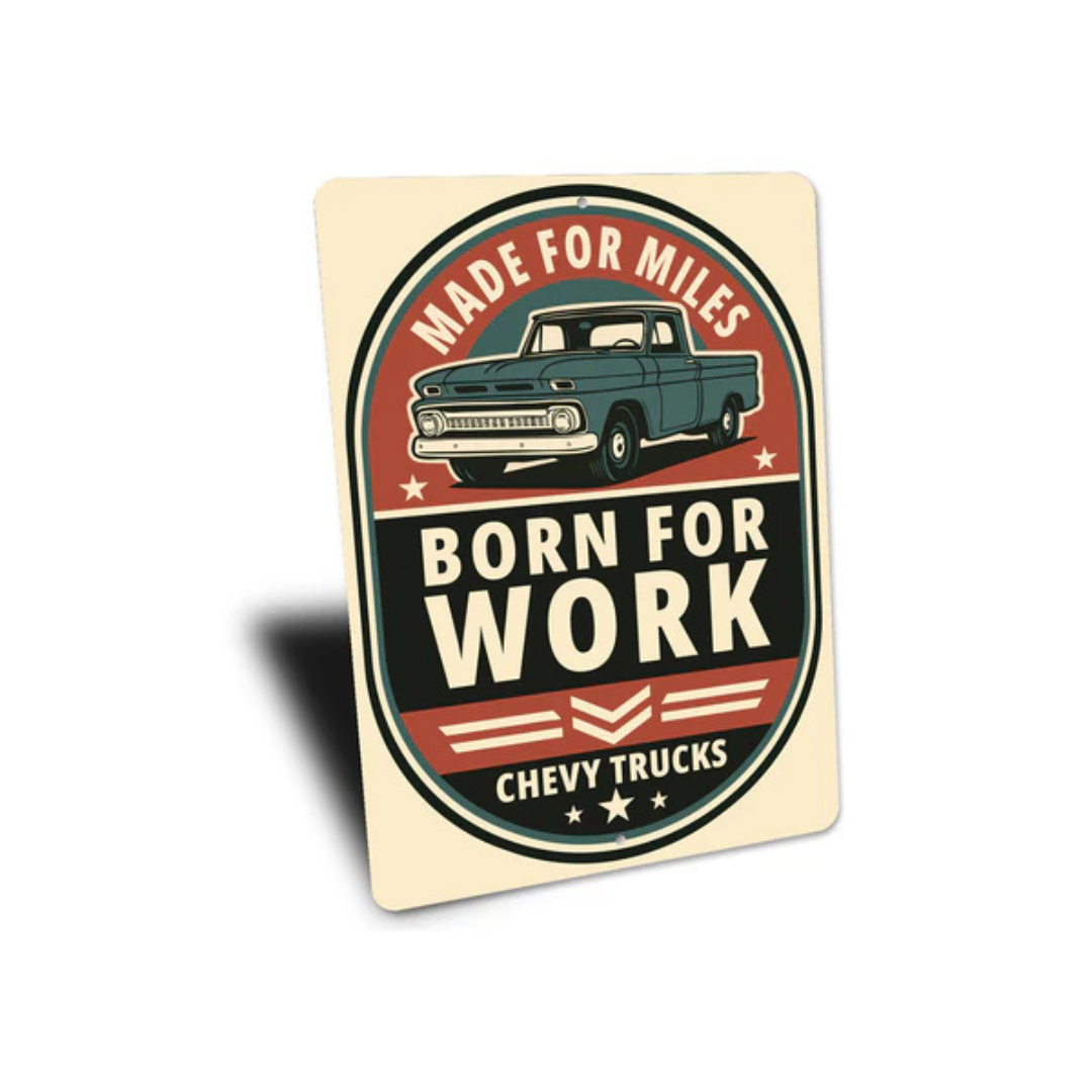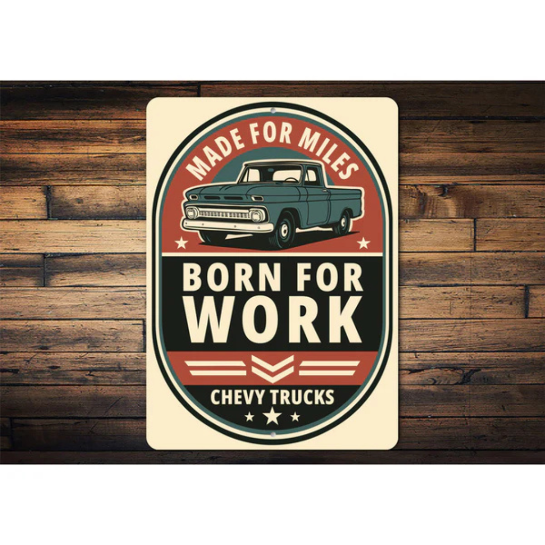 This Chevy Trucks Made For Miles Born For Work Chevrolet Sign makes a great gift!