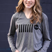 Ladies Jeep® Grille Text Triblend Hooded Pullover - Grey Heather