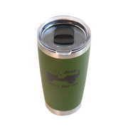 20 oz double wall 18/8 stainless steel thermal tumbler with copper vacuum insulation, stainless steel rim, push-on clear lid, and powder coated finish