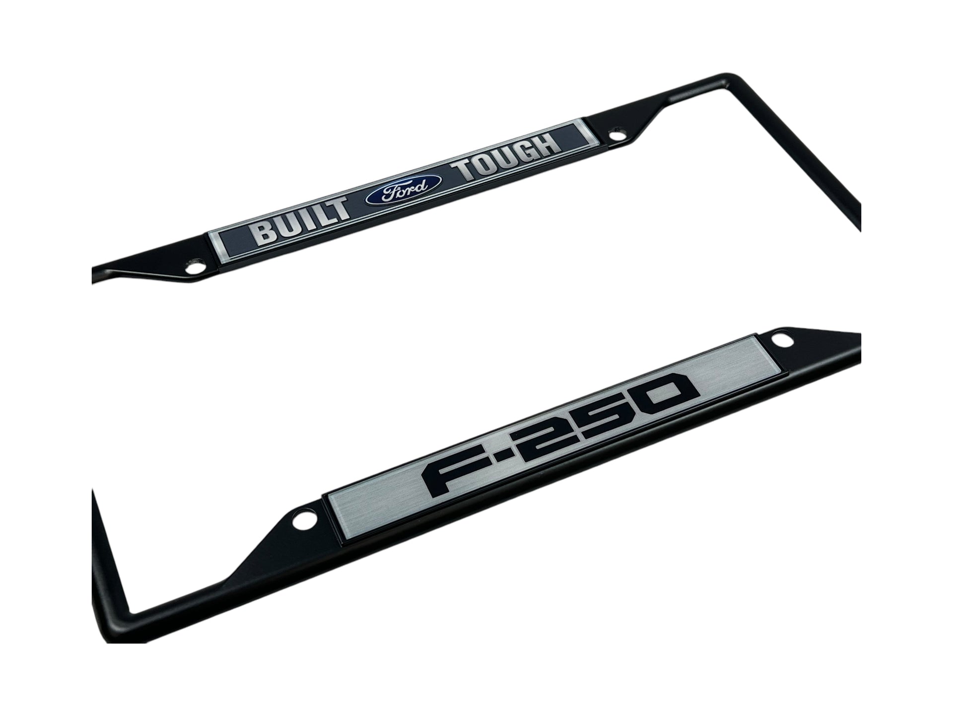 Not only does this frame display your commitment to the Ford brand, but it also adds a rugged touch to your ride. The Built Ford Tough F-250 Black License Plate Frame is an excellent gift for any Ford truck lover or a perfect treat for yourself if you want to personalize your vehicle.
