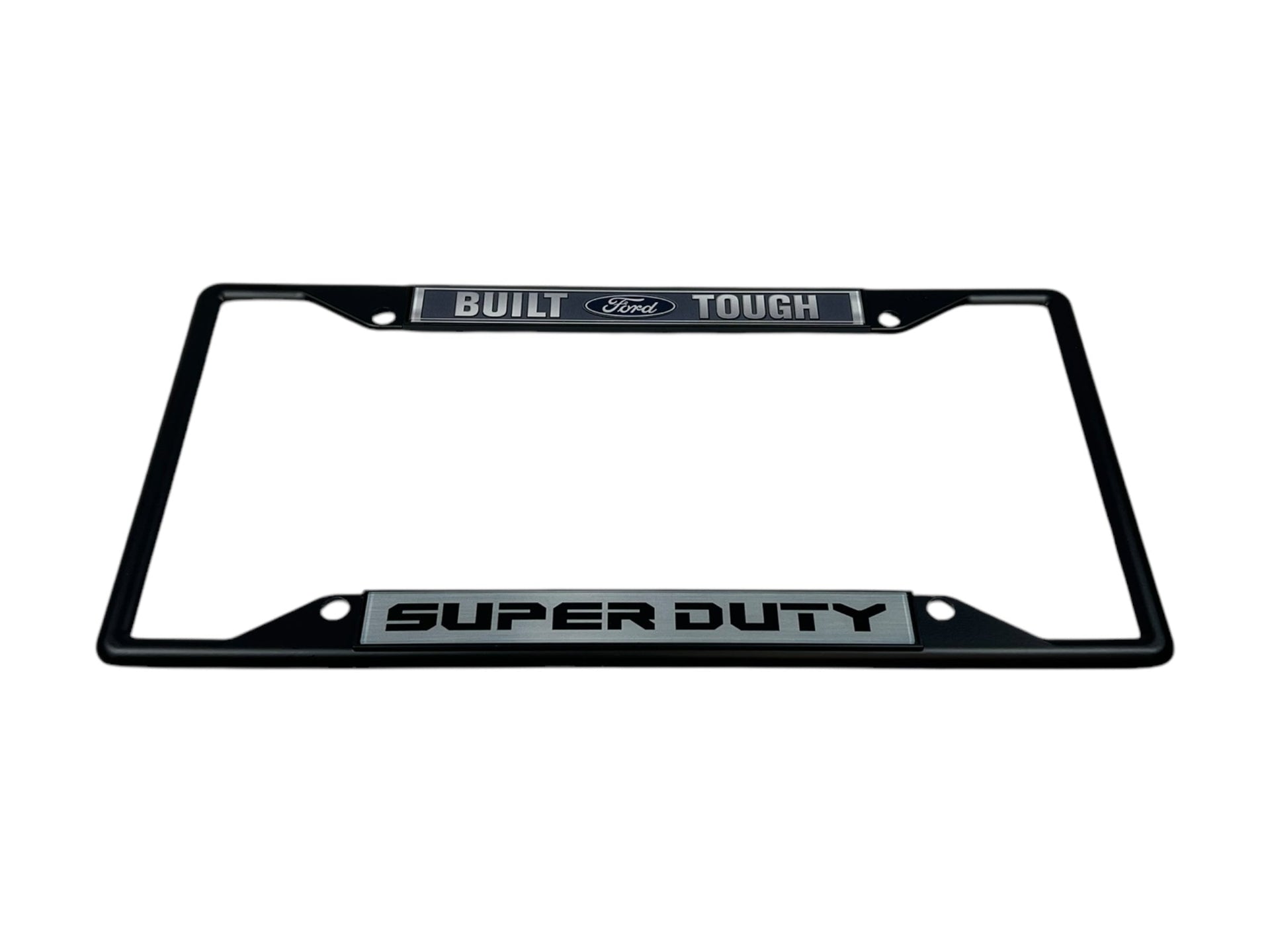 Upgrade your vehicle with the ultimate in style and durability: the Built Ford Tough Super Duty Black License Plate Frame. This license plate frame is not just an accessory; it's a statement that showcases your loyalty to the Ford brand and the rugged lifestyle it represents. Made specifically for Ford Super Duty trucks, this frame blends seamlessly with the vehicle's design while adding a unique flair that all Ford enthusiasts will appreciate.