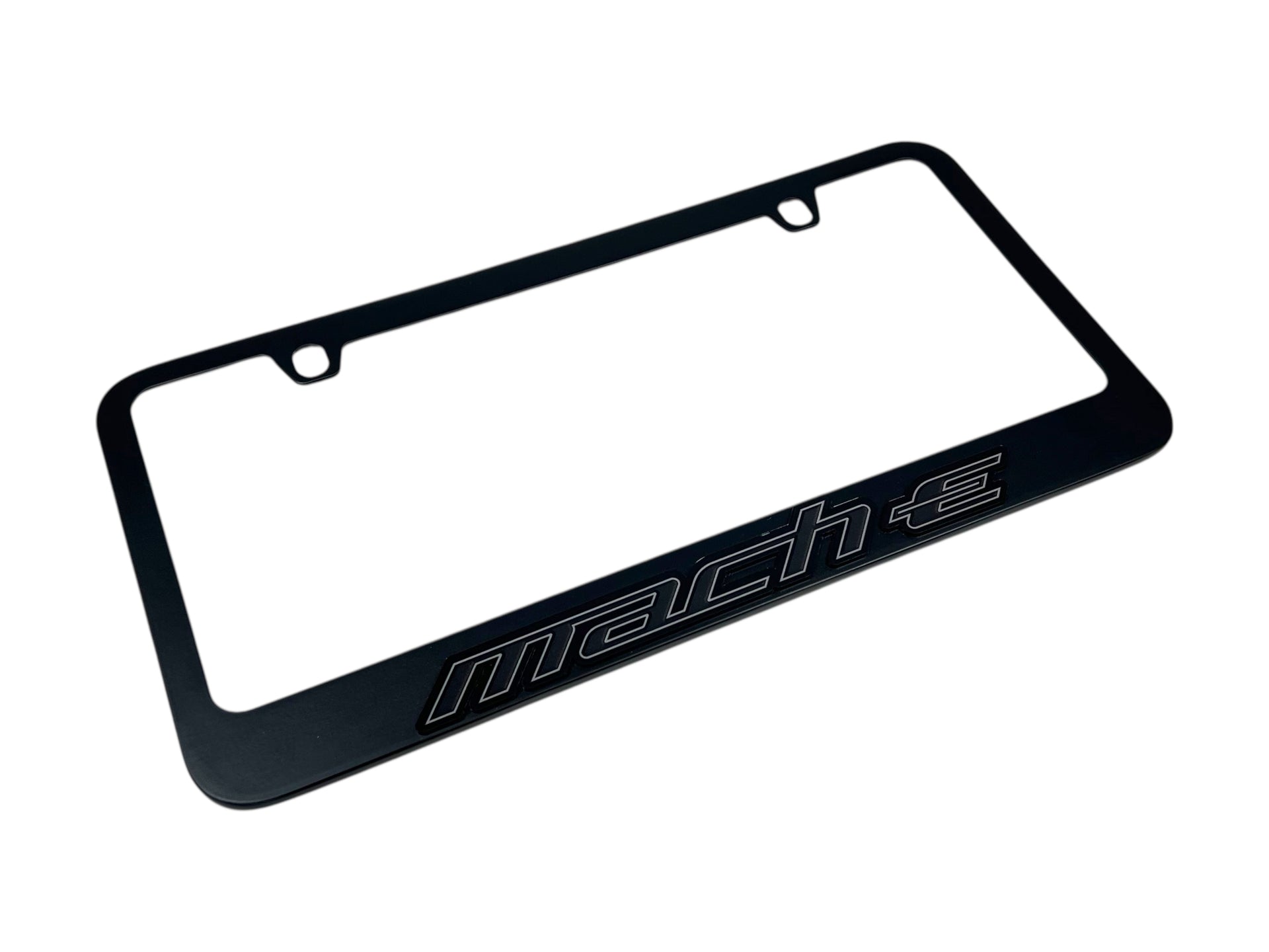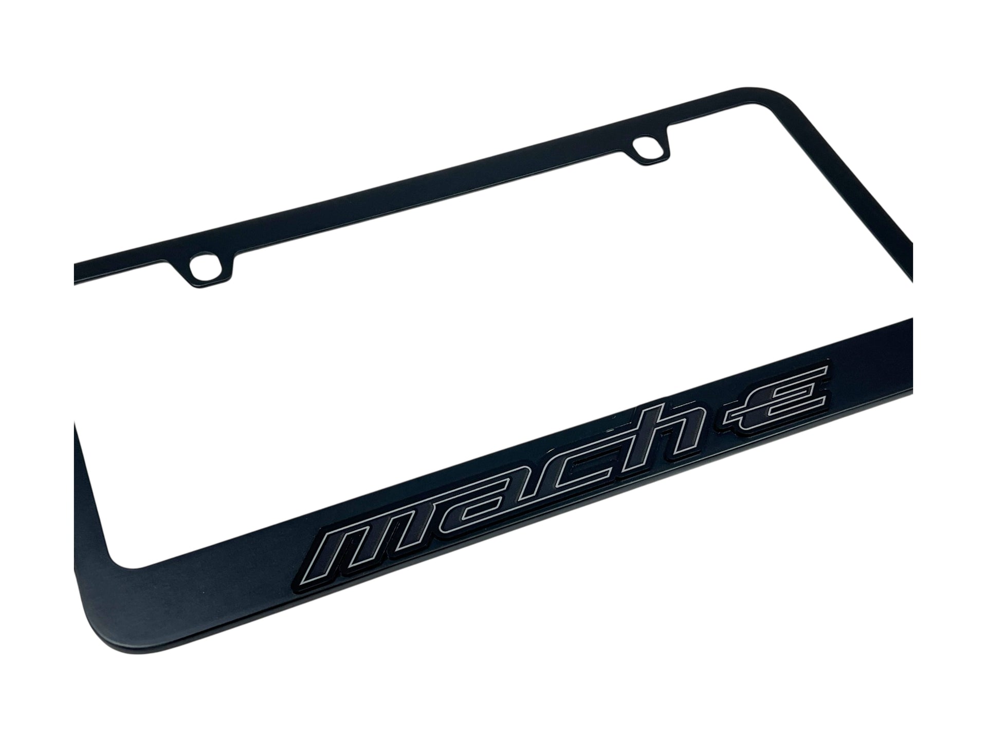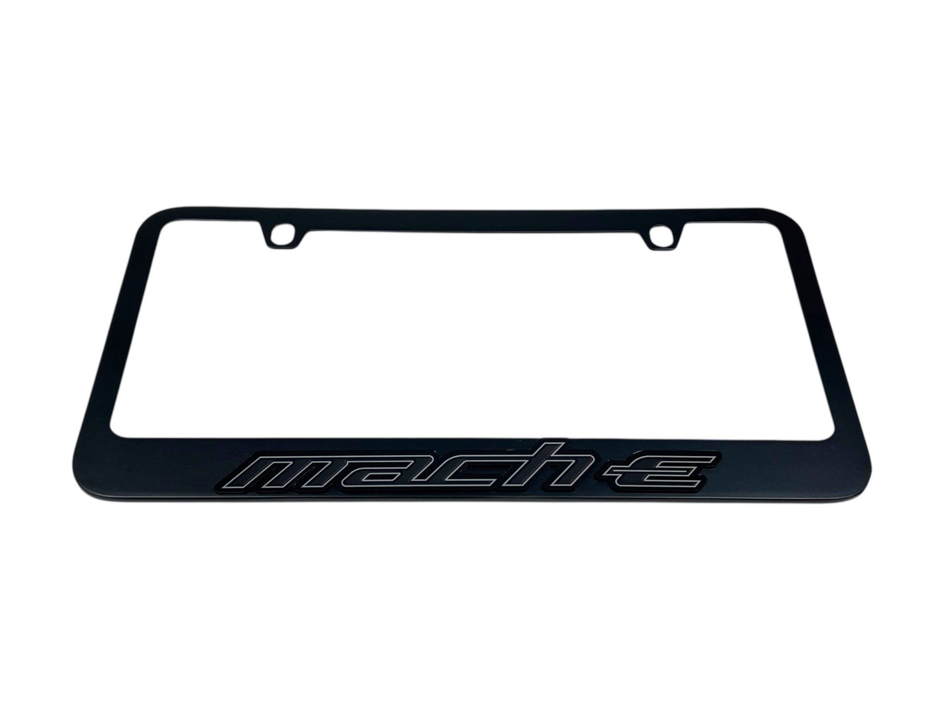 Enhance the look of your vehicle with the Ford Mustang Mach-E Blacked Out License Plate Frame. This expertly crafted accessory is designed for both style and durability, perfectly fitting your 2021 and newer Mach-E models. Achieve that sleek, modern aesthetic while showcasing your pride for the Mustang heritage.