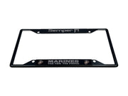 Constructed with high-quality materials, this license plate frame is designed to withstand the elements while maintaining its striking black finish. It's more than just a frame; it's a statement that embodies the spirit of the Marine Corps.