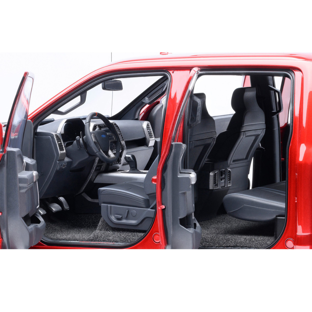 Brand new 1/18 scale model car of 2019 Ford F-150 Raptor Pickup Truck Ruby Red Metallic car model by Autoart.