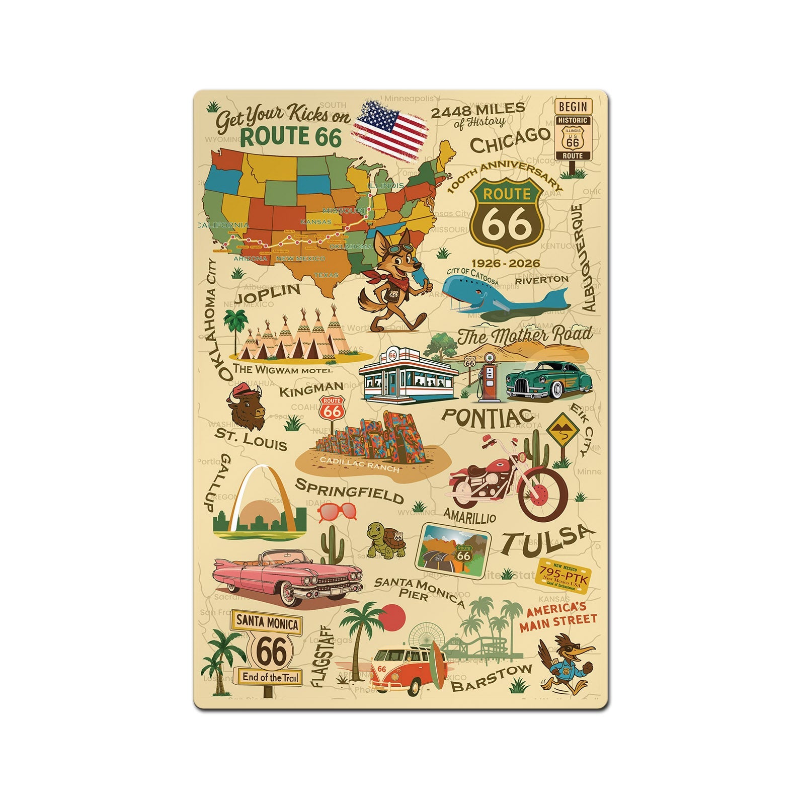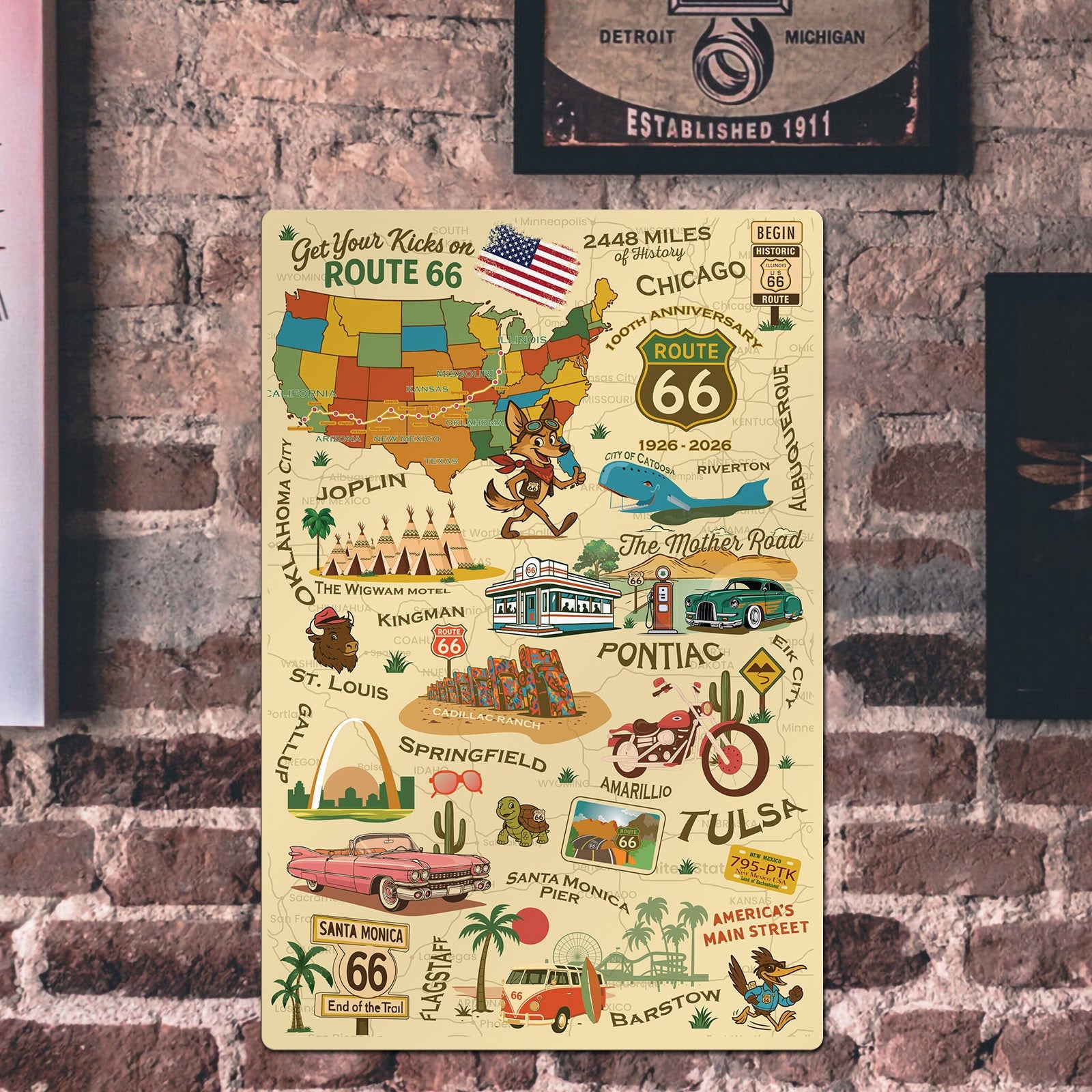 Legends of Route 66 with Mascots USA Made 22 Gauge 12 x 18 Metal Wall Decor– Sunbeltgifts® 100th Anniversary Edition