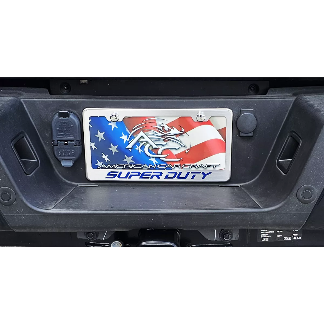 Upgrade your Ford F-250 with the American Car Craft License Plate Frame with Super Duty Lettering, a Ford-licensed product designed to add a sleek, custom look to your truck. Proudly made in the USA, this license plate frame is the perfect way to show off your Ford pride while adding a touch of style and durability to your vehicle.