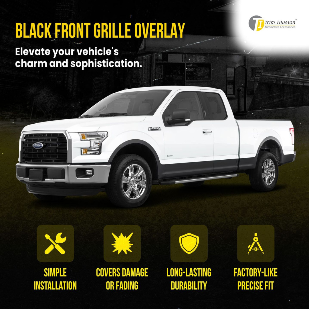 Sleek Gloss Black Finish: Meticulously crafted with a sleek gloss black finish, this grille overlay adds a touch of modern sophistication to your Ford F-150, elevating its overall aesthetic appeal.