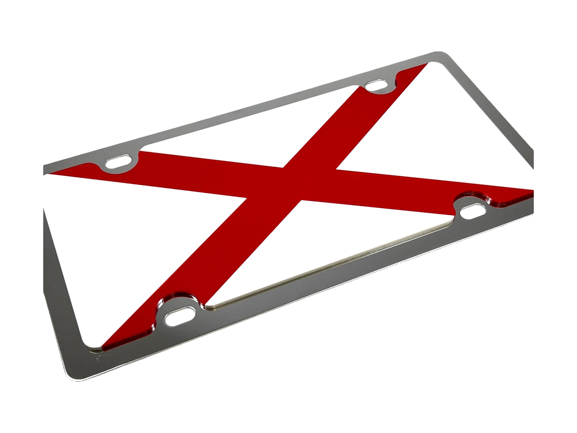 The Alabama State Flag Stainless Steel License Plate features a vibrant design that captures the essence of the state's history and culture. Whether you are cruising down the highway or parked at your favorite spot, this license plate is sure to turn heads and spark conversations. The striking colors and bold representation of the flag will evoke a sense of pride in every viewer.