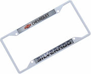 Upgrade your Chevrolet Silverado with this stylish license plate frame today! It's the perfect way to show off your pride in your vehicle while protecting your license plate. Make your Silverado a head-turner with the Chevrolet Silverado Chrome License Plate Frame.