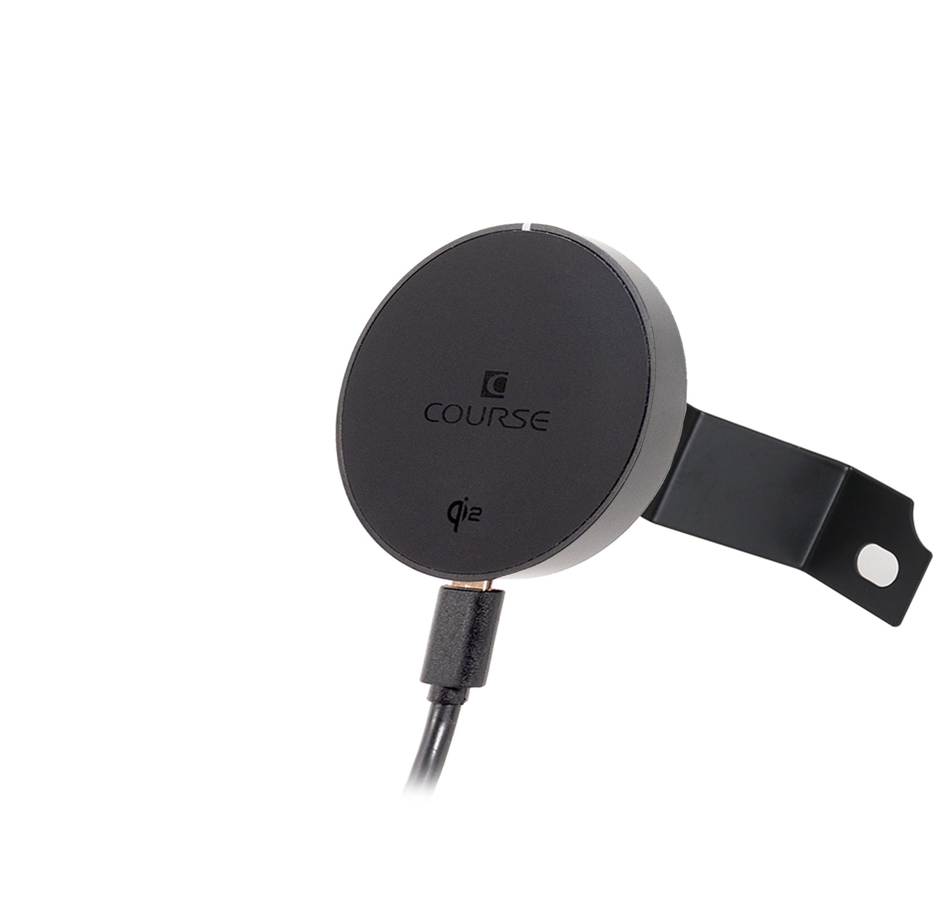 Available with a non-charging magnetic head option as shown in the photos and installation video, the optional Course Motorsports Automatic Gripping Wireless Induction Charger Mount or Course Motorsports Magnetic Induction Charger - MagSafe Compatible.