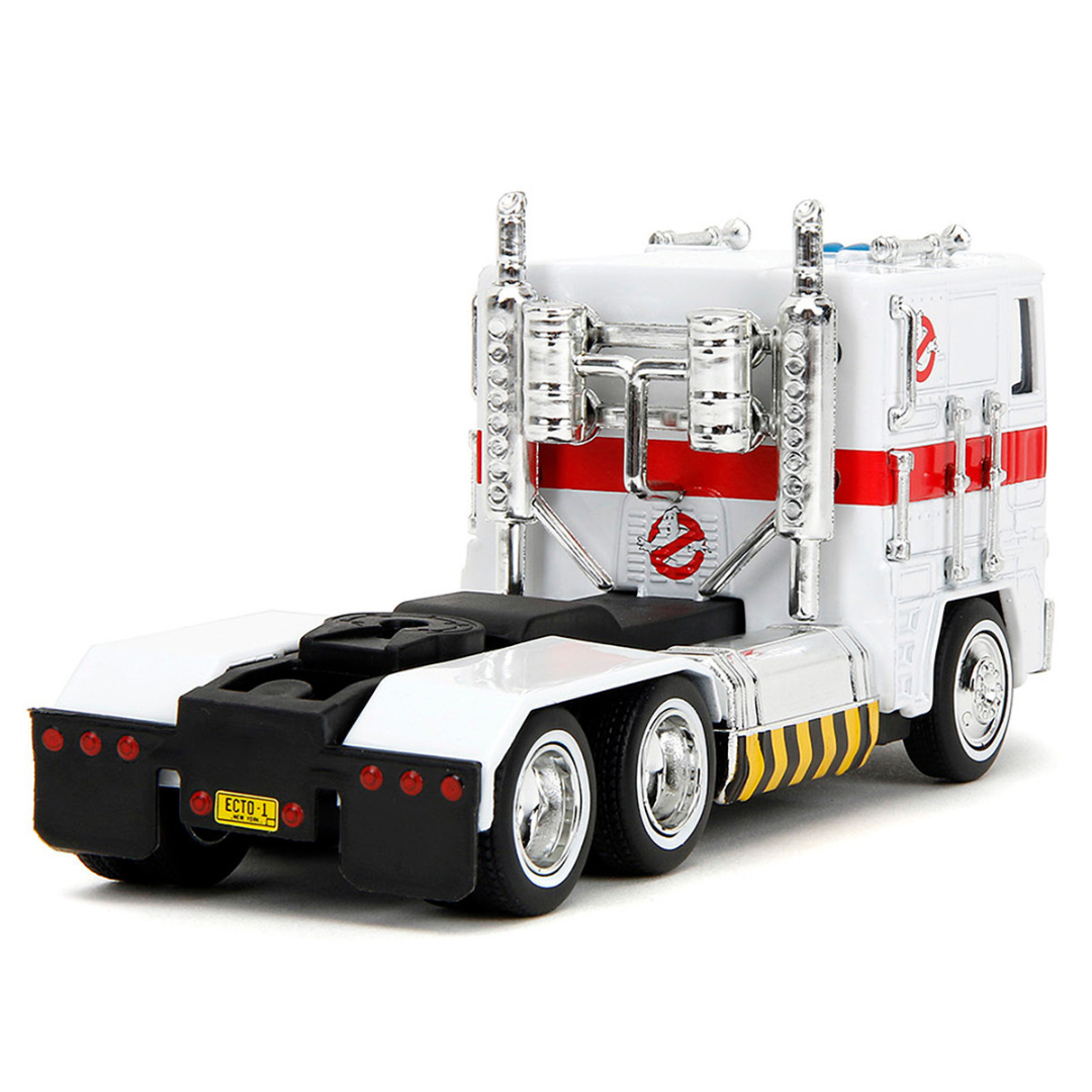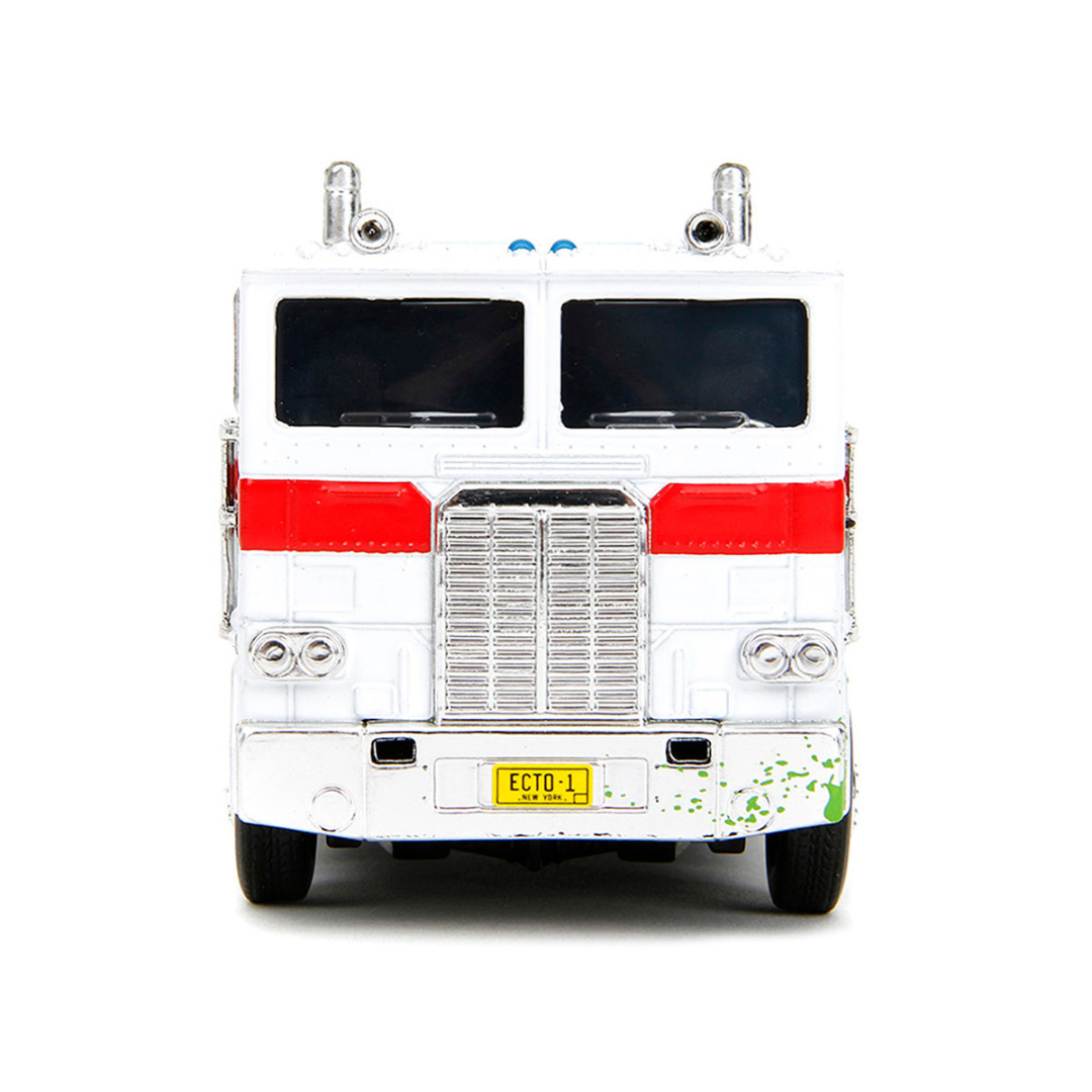 Brand new diecast model of G1 Autobot Optimus Prime Truck White with Robot on Chassis from "Transformers" TV Series - "Ghostbusters" (1984) Movie Crossover "Hollywood Rides" Series diecast model by Jada.
