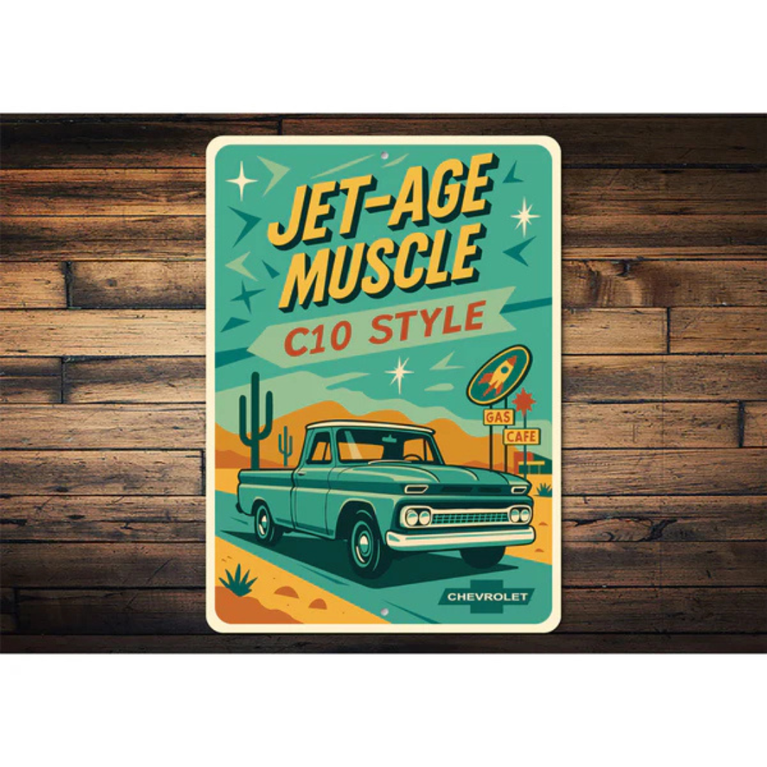 This Jet-Age Muscle C10 Style Chevrolet Sign makes a great gift!